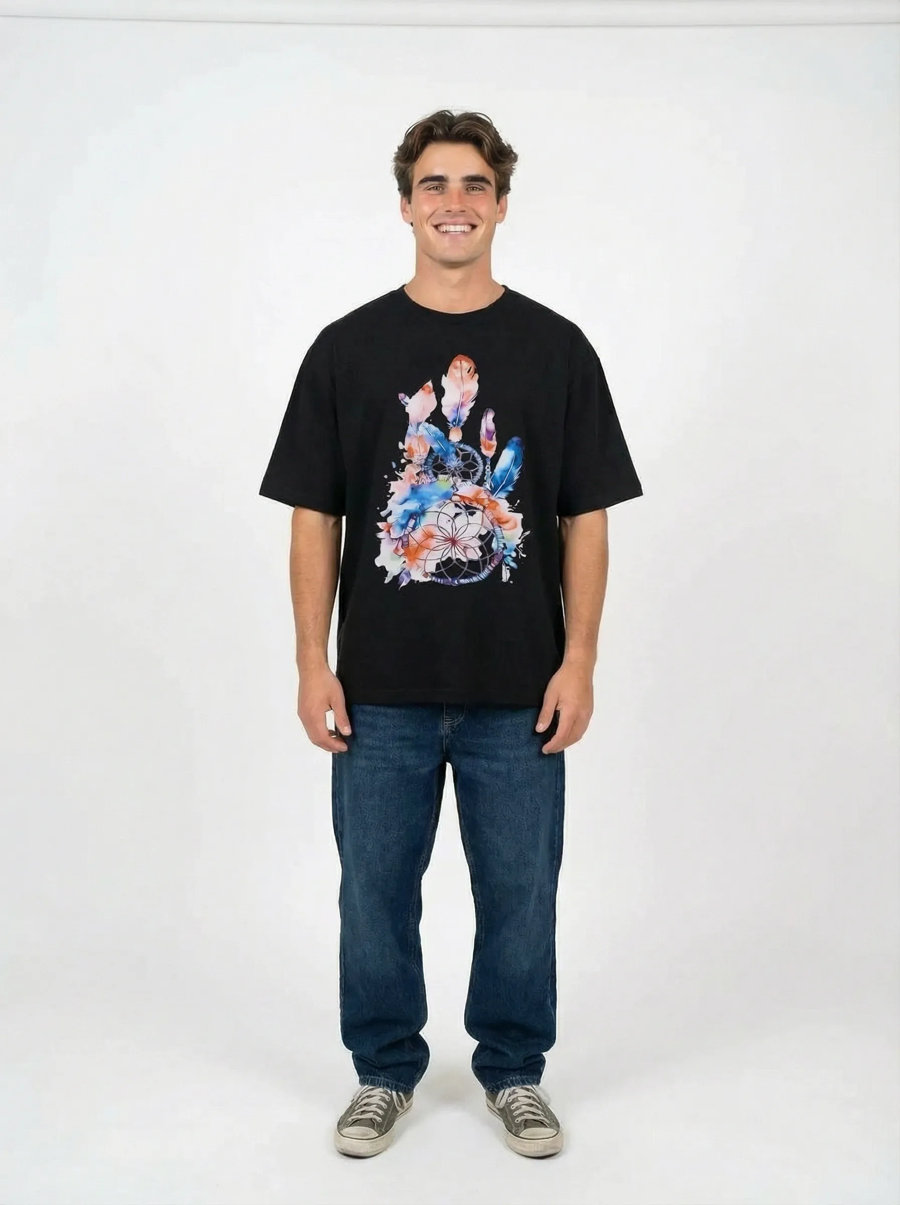 Dream Catcher Feathers Round Neck Loose Fit T-shirt